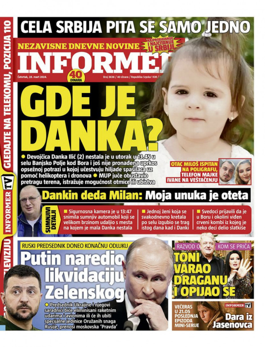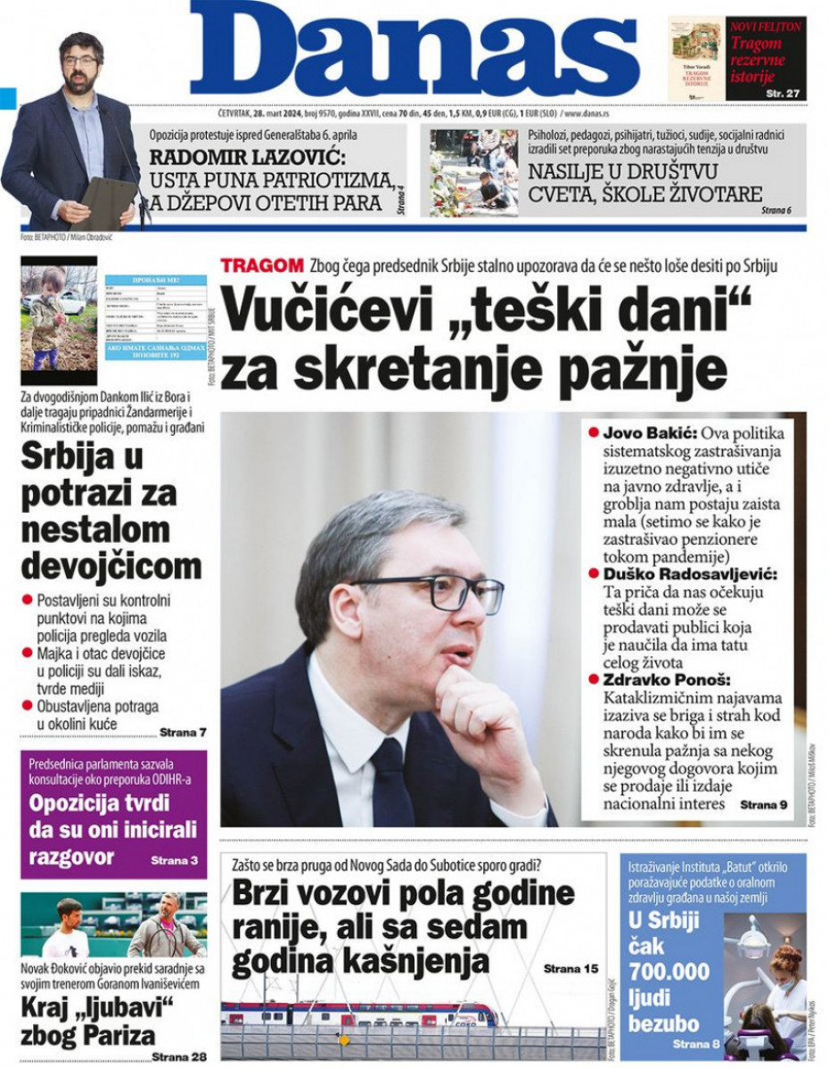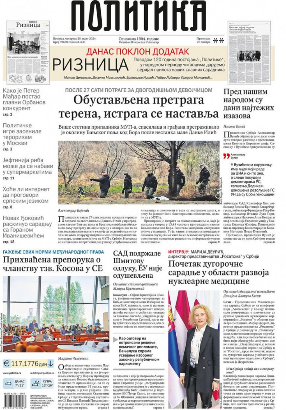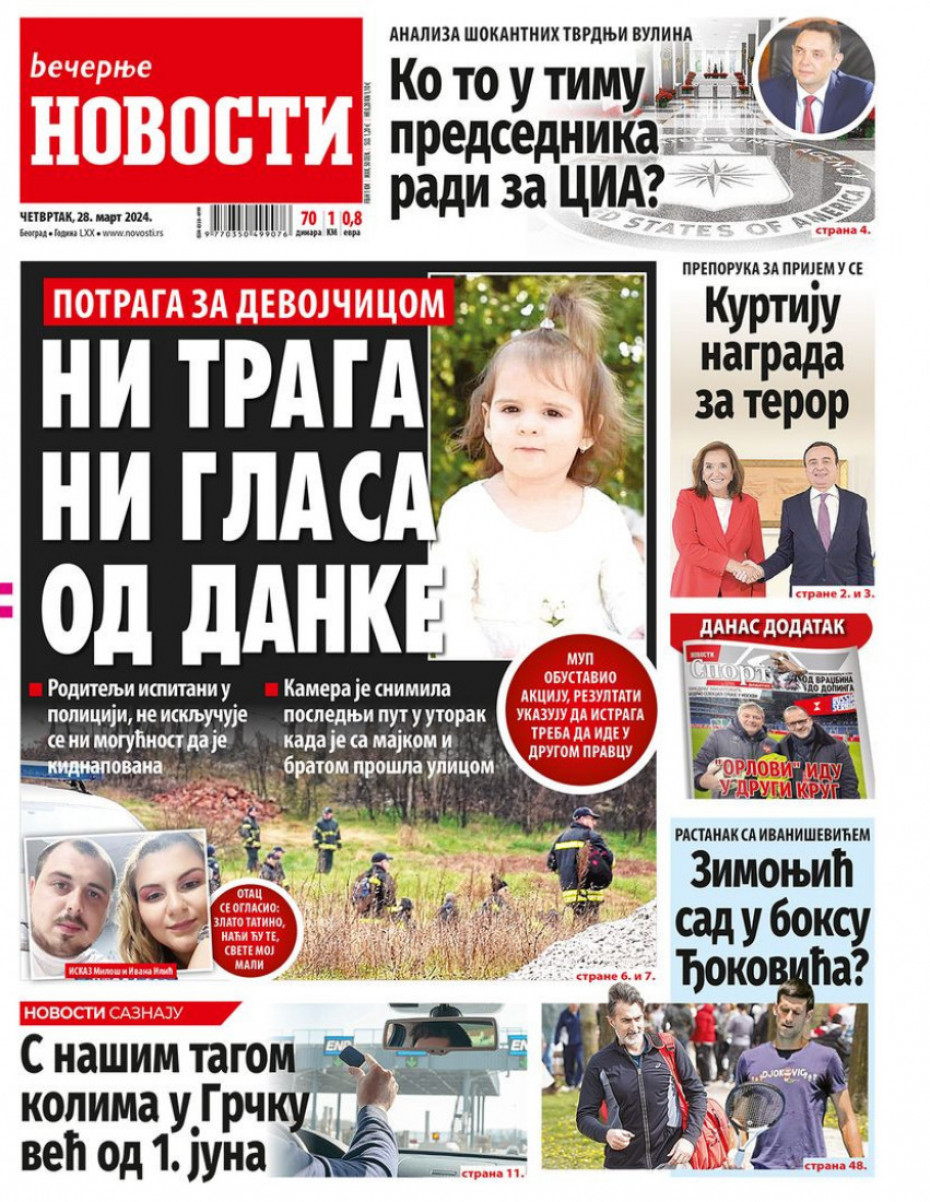 NASLOVNE STRANE SUTRAŠNJIH NOVINA: Prelistavamo za vas