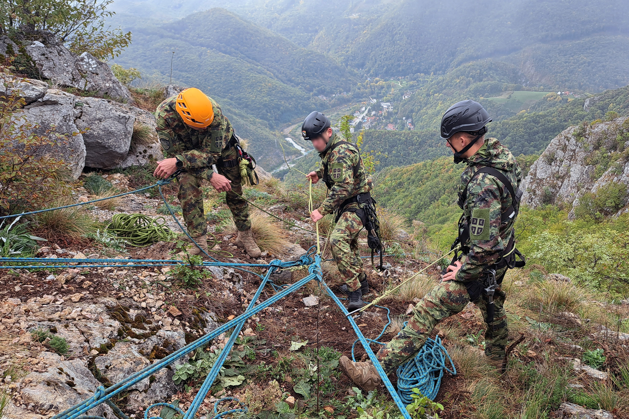 Na planinskom terenu u rejonu Ovčarsko-kablarske klisure u toku je realizacija naprednog kursa veranja i gorske službe spasavanja za pripadnike 72. brigade za specijalne operacije.